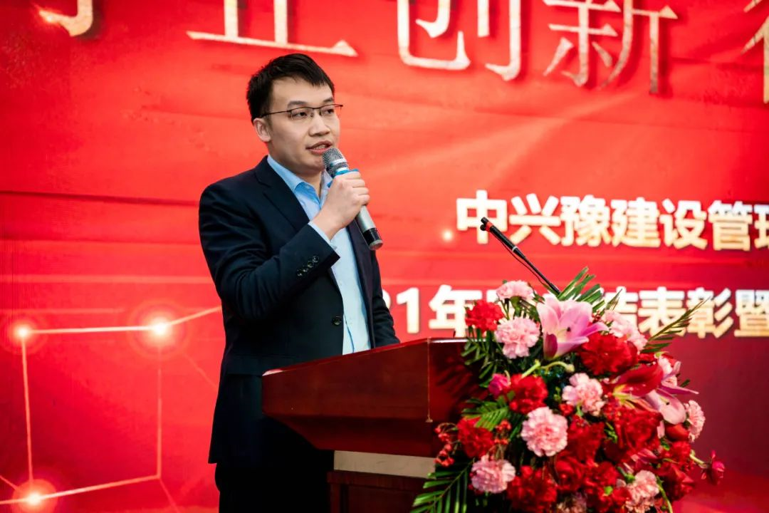公司副總裁王明軍宣讀《關(guān)于對獲得2021年度工程質(zhì)量獎和榮譽(yù)獎的項目部表彰獎勵的決定》、《關(guān)于表彰2021年度先進(jìn)集體和先進(jìn)工作者的決定》,并號召全體員工要以受到表彰的先進(jìn)集體和先進(jìn)工作者為榜樣,在學(xué)習先進(jìn)中提升自我,在對標先進(jìn)中持續奮斗,在爭當先進(jìn)中擔當作為,為中興豫的美好明天貢獻力量!