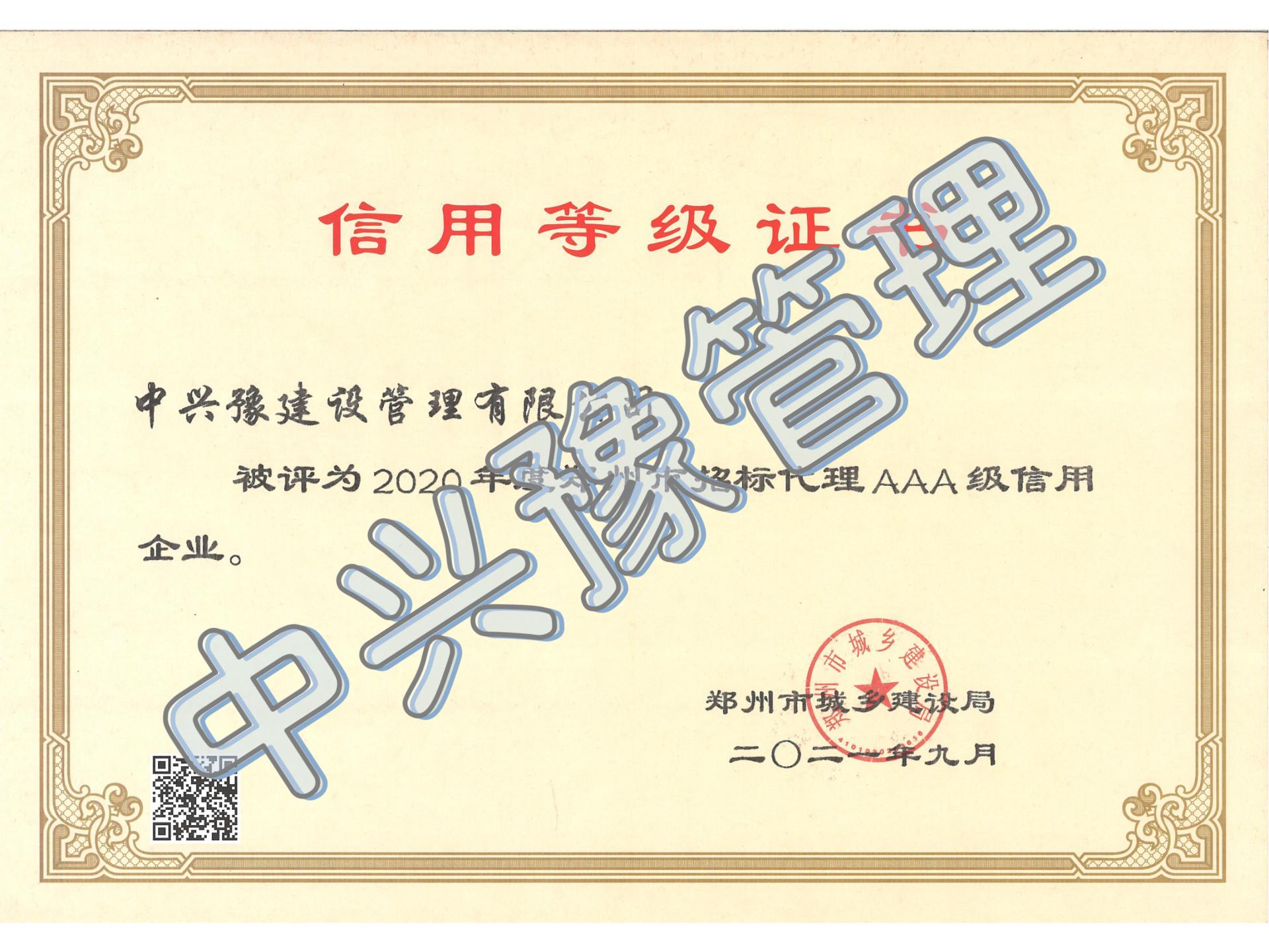 2020年度招標代理AAA信用等級-公司榮譽(yù)