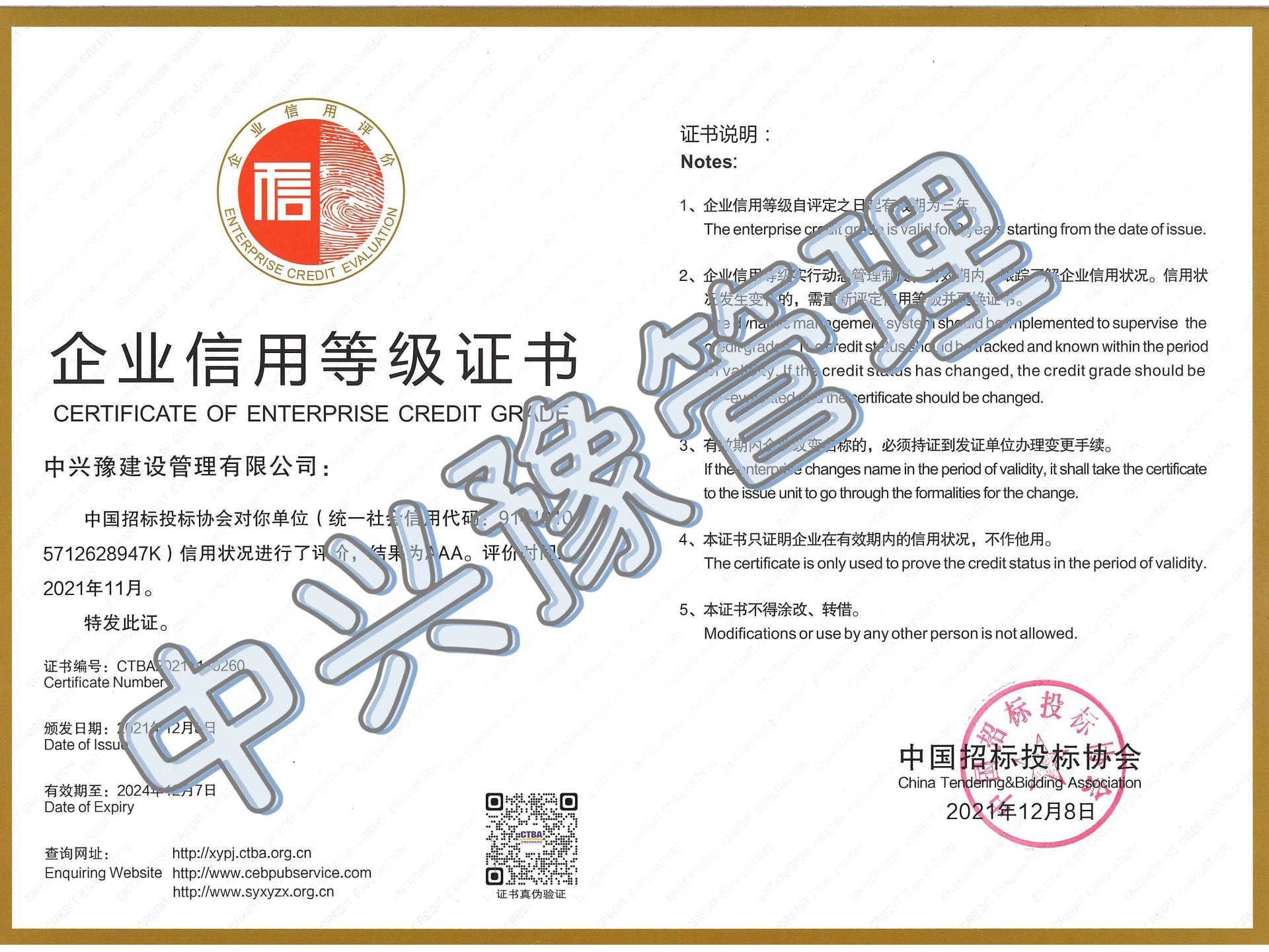 2021年度招標代理機構信用評價(jià)AAA證書(shū)-公司榮譽(yù)