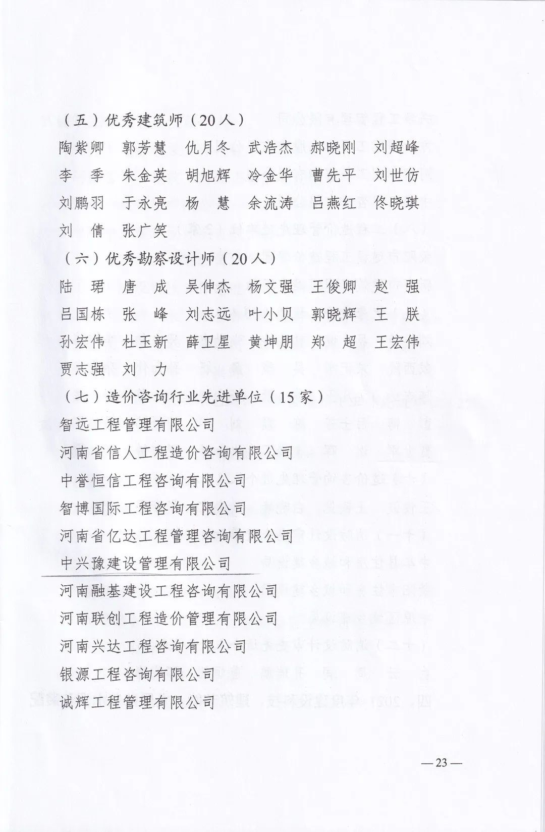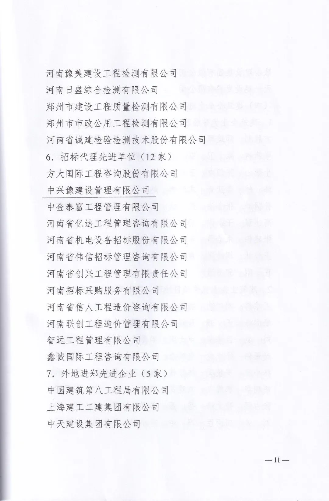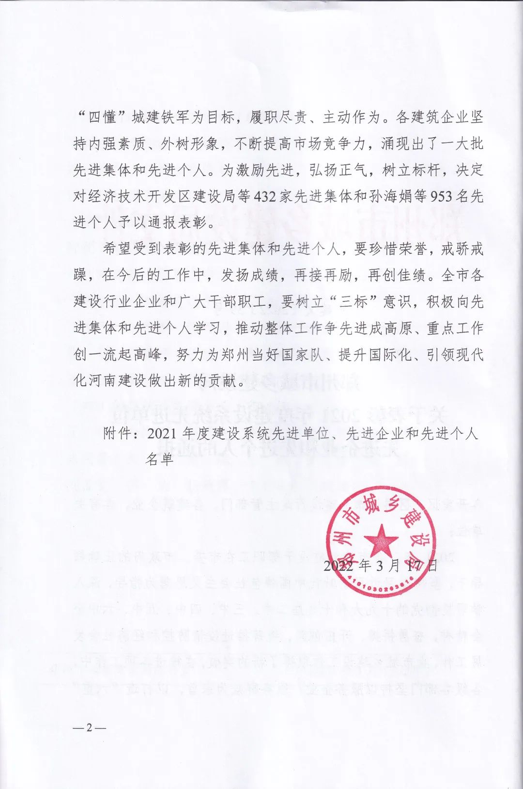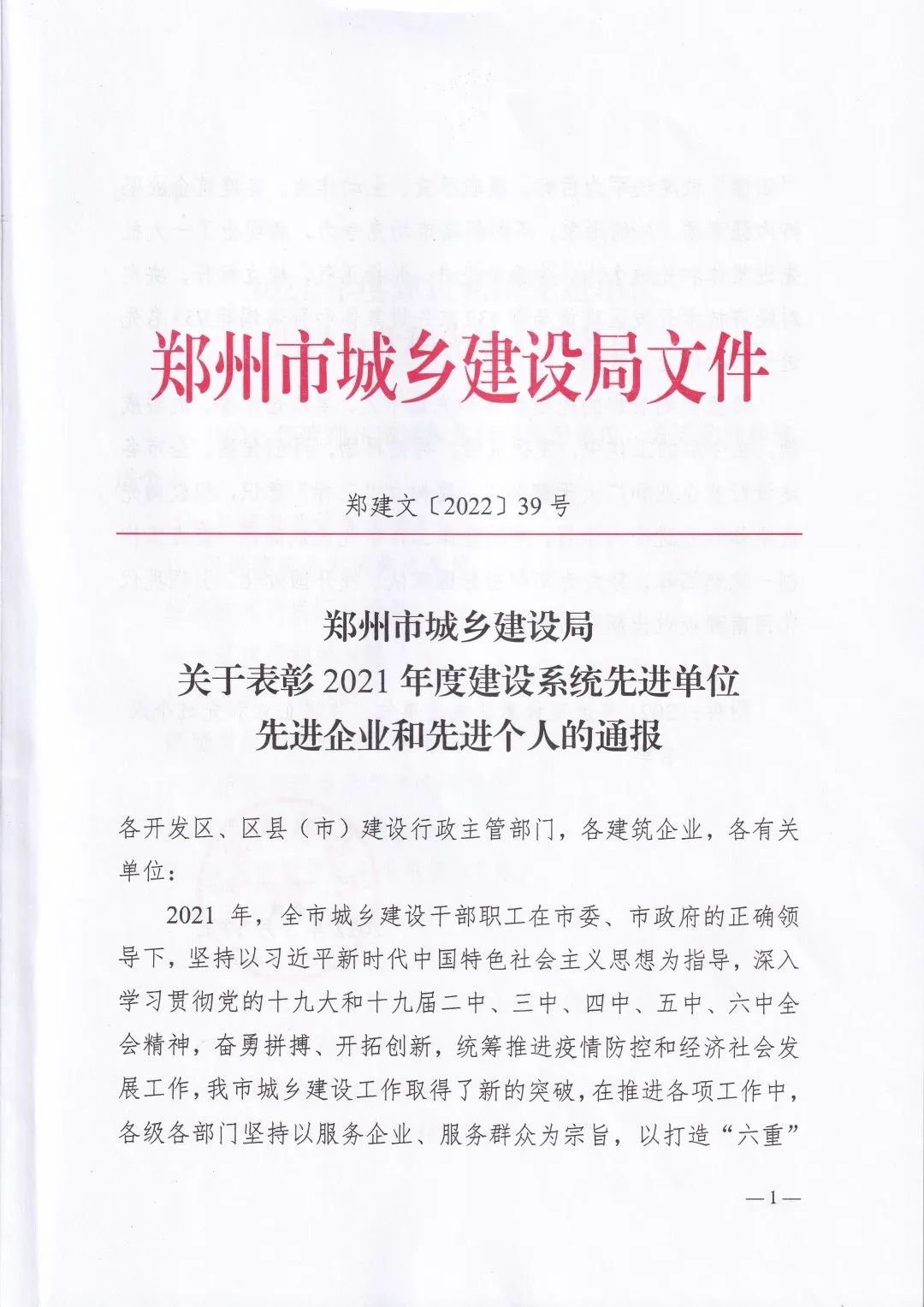 近日,鄭州市城鄉建設局發(fā)布了《關(guān)于表彰2021年度建設系統先進(jìn)單位先進(jìn)企業(yè)和先進(jìn)個(gè)人的通報》,中興豫建設管理有限公司被評為“2021年度招標代理先進(jìn)單位”、“2021年度造價(jià)咨詢(xún)行業(yè)先進(jìn)單位”,我公司員工韋曉東被評為“優(yōu)秀總監”、劉東生被評為“優(yōu)秀注冊監理工程師”、賈世軍被評為“優(yōu)秀造價(jià)工程師”。