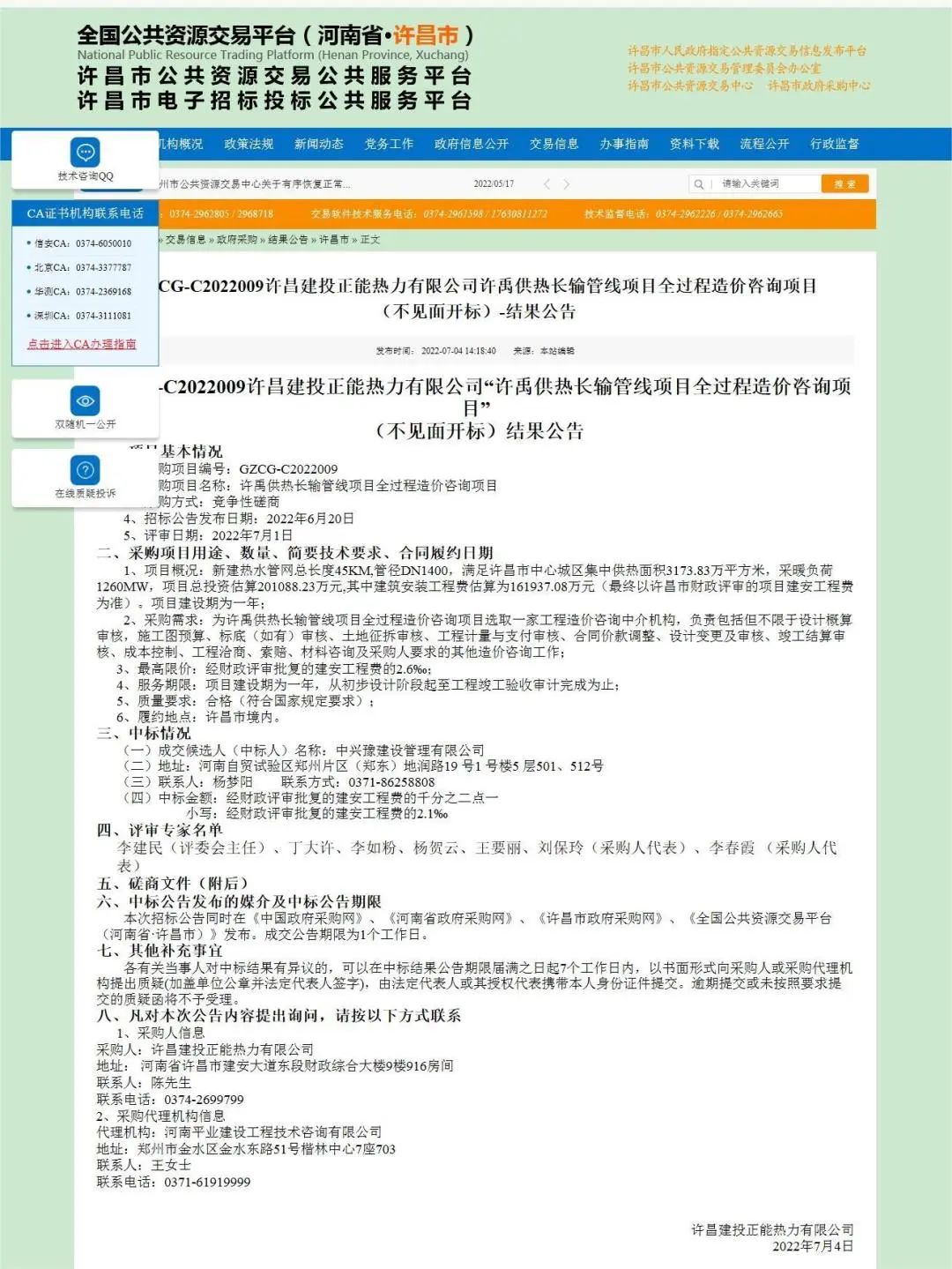 近日,中興豫建設管理有限公司在“許禹供熱長(cháng)輸管線(xiàn)項目全過(guò)程造價(jià)咨詢(xún)項目”招投標活動(dòng)中成功中標。
