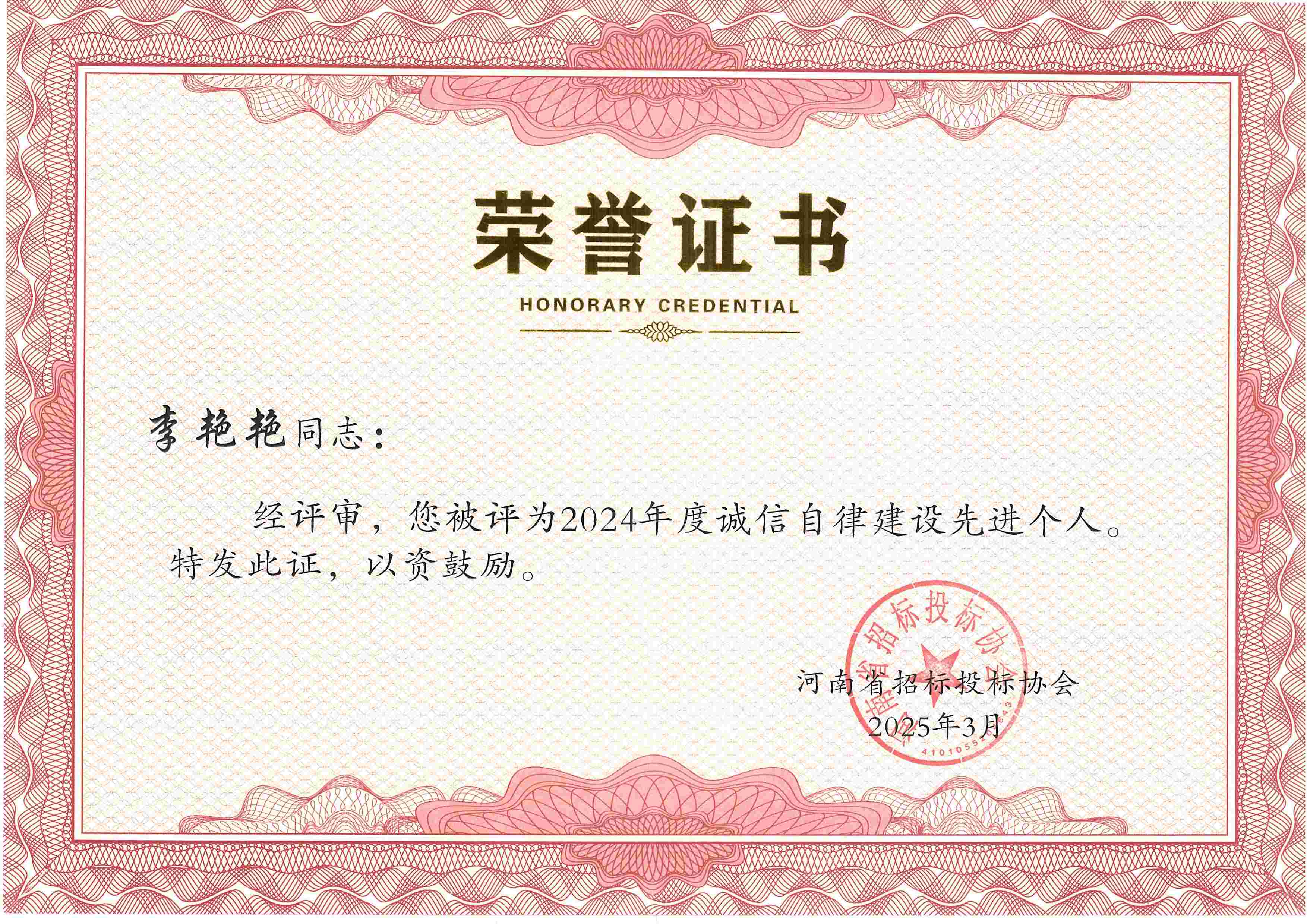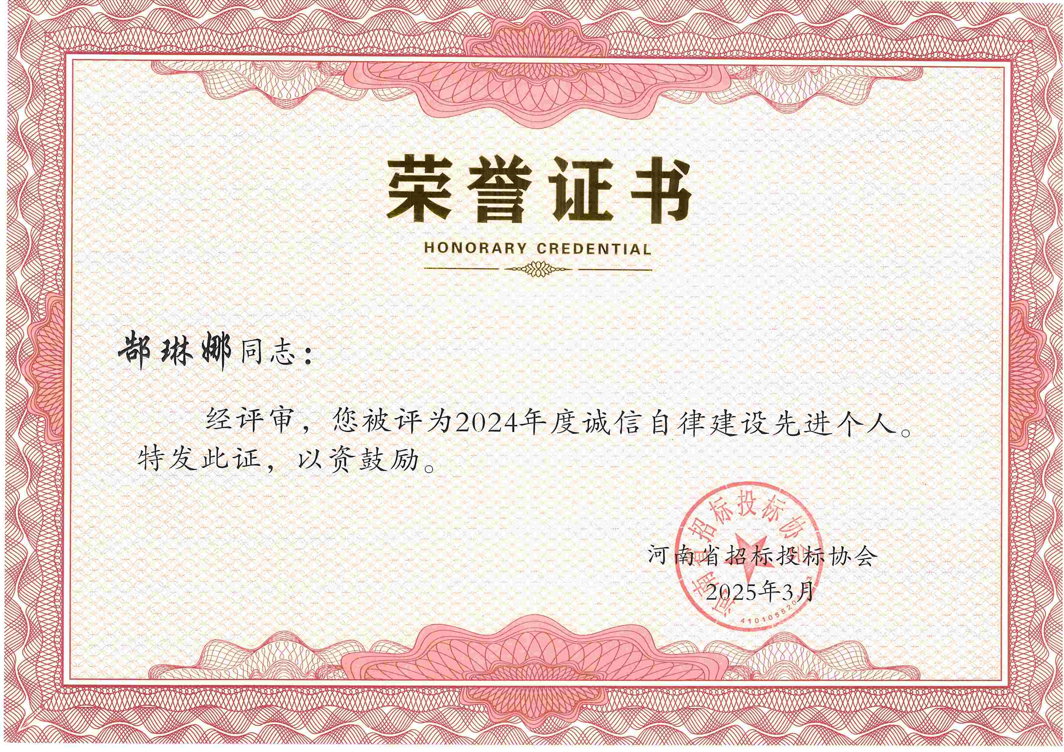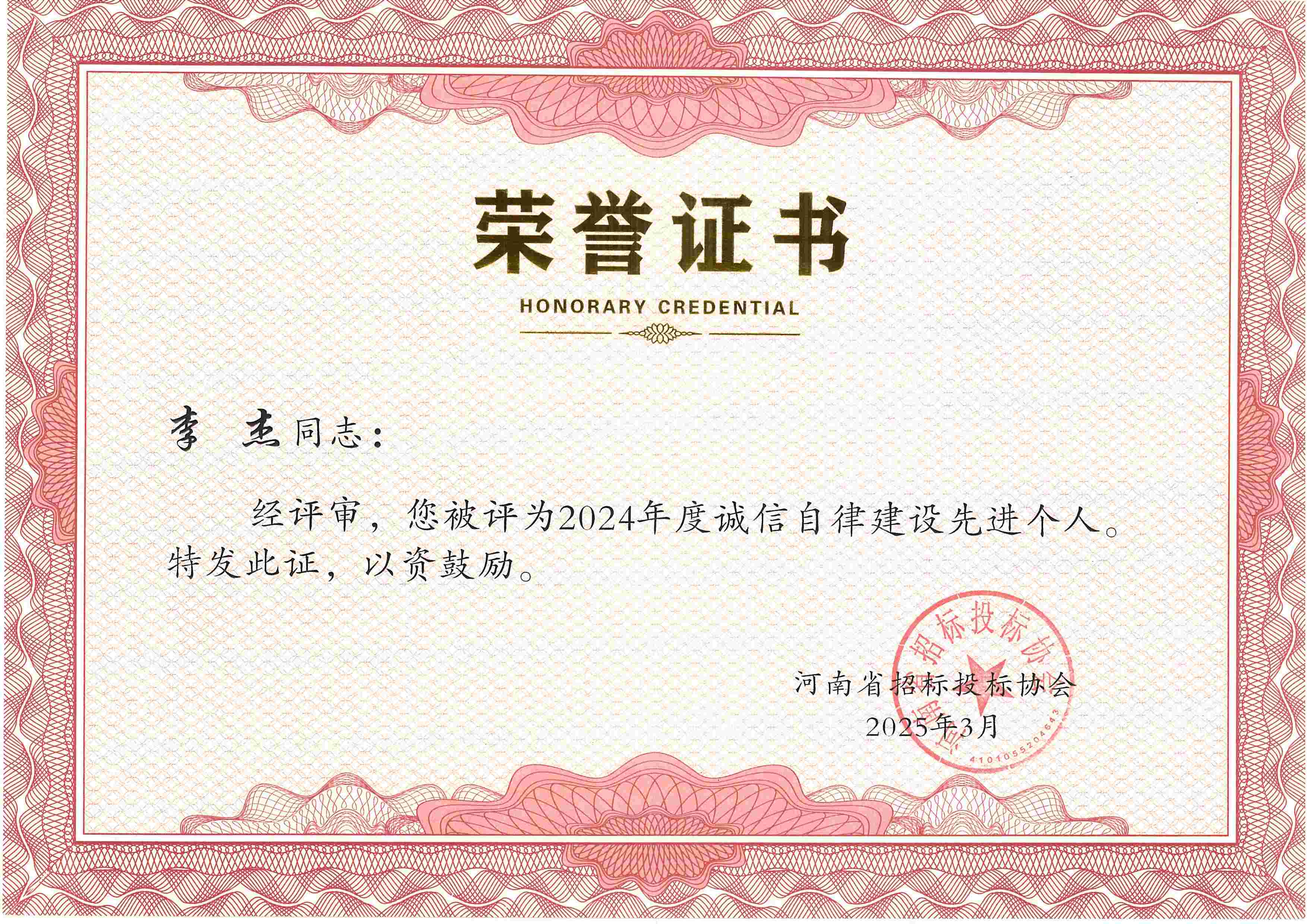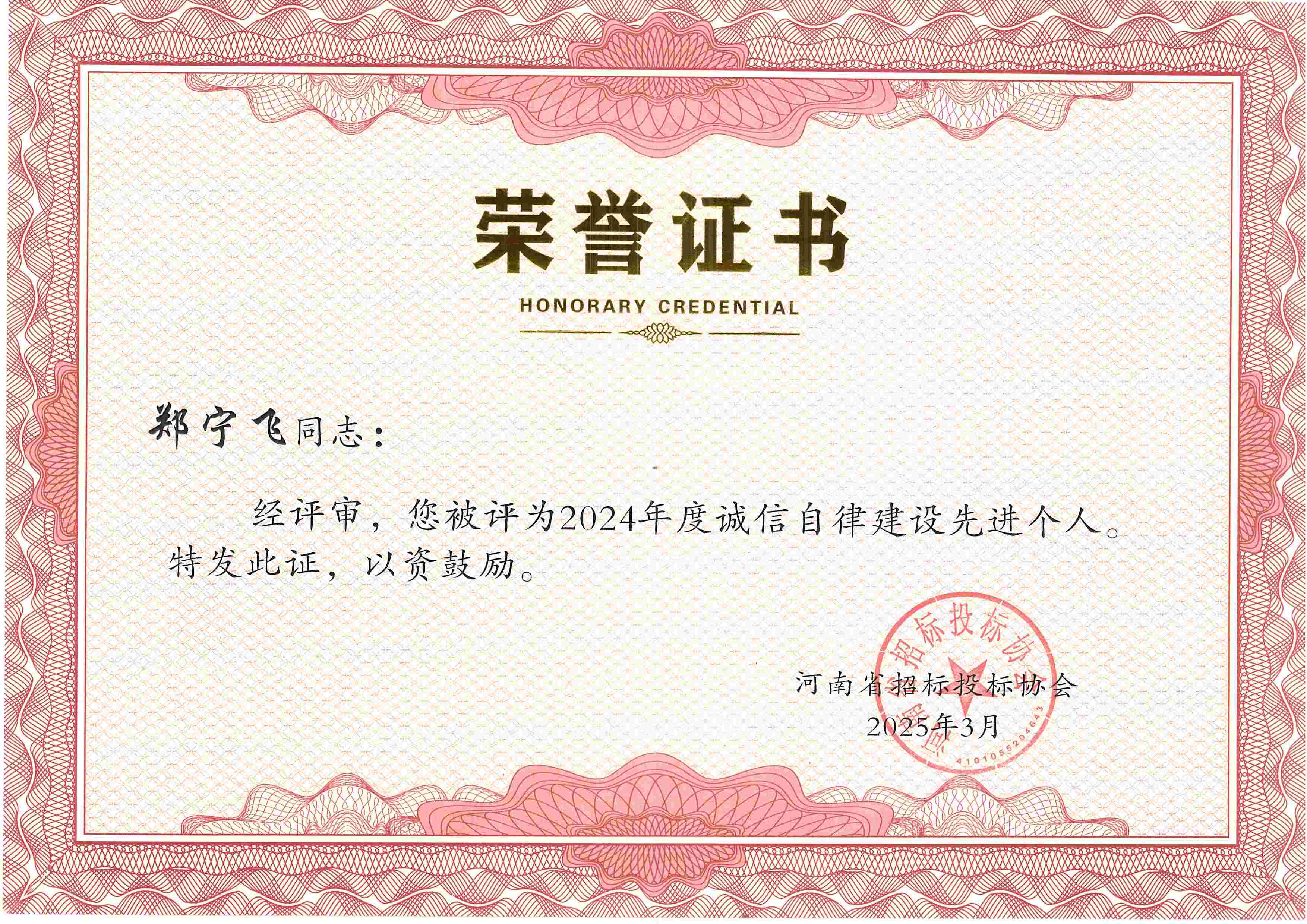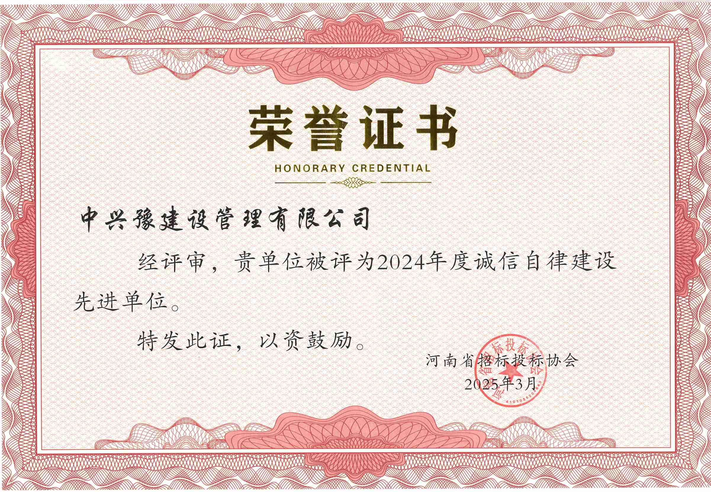近日,河南省招標投標協(xié)會(huì )發(fā)布關(guān)于表彰2024年度誠信自律建設先進(jìn)單位、先進(jìn)個(gè)人的決定。其中,中興豫建設管理有限公司榮幸入選“2024年度誠信自律建設先進(jìn)單位”。