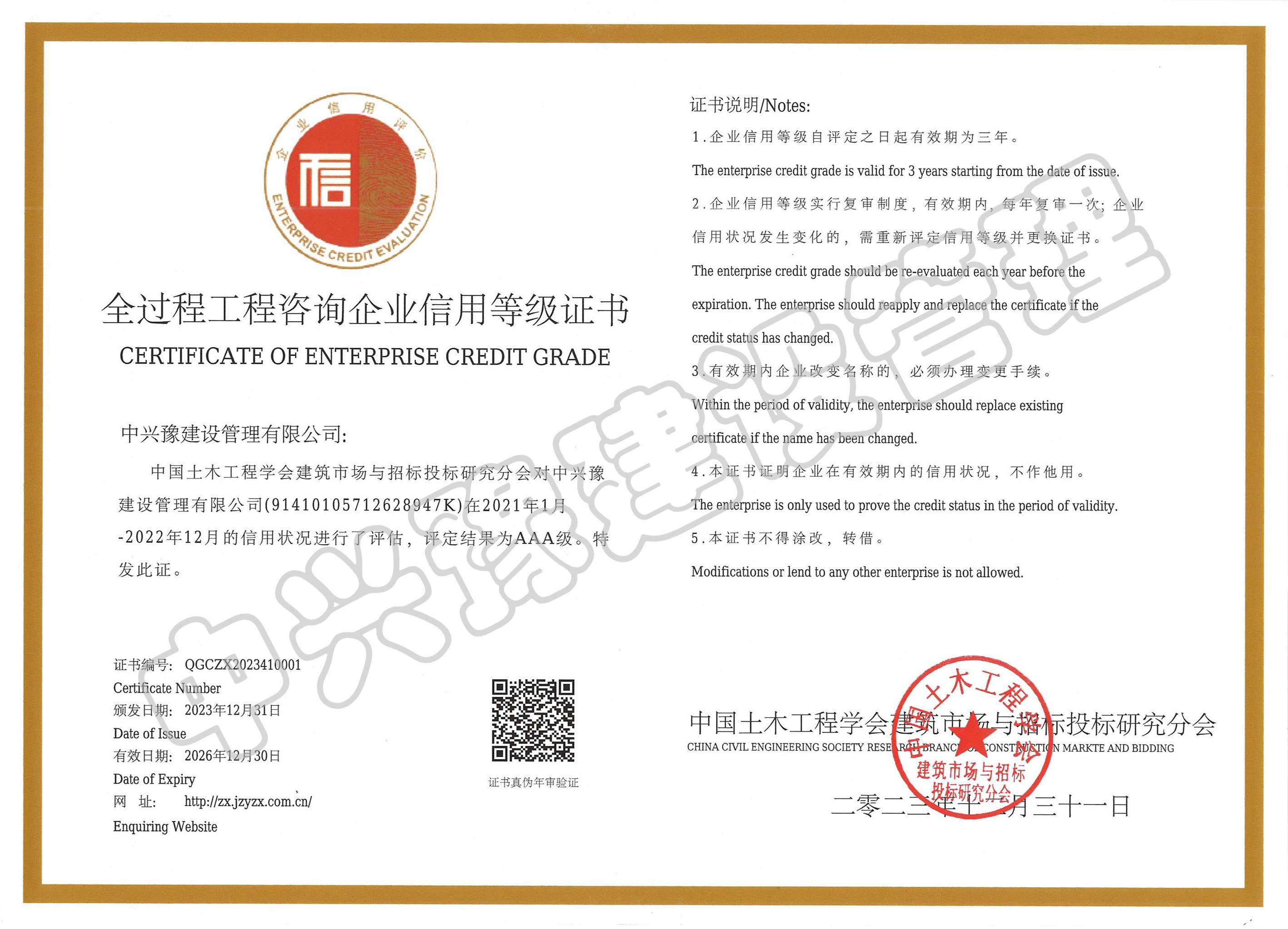 全過(guò)程工程咨詢(xún)AAA-公司榮譽(yù)