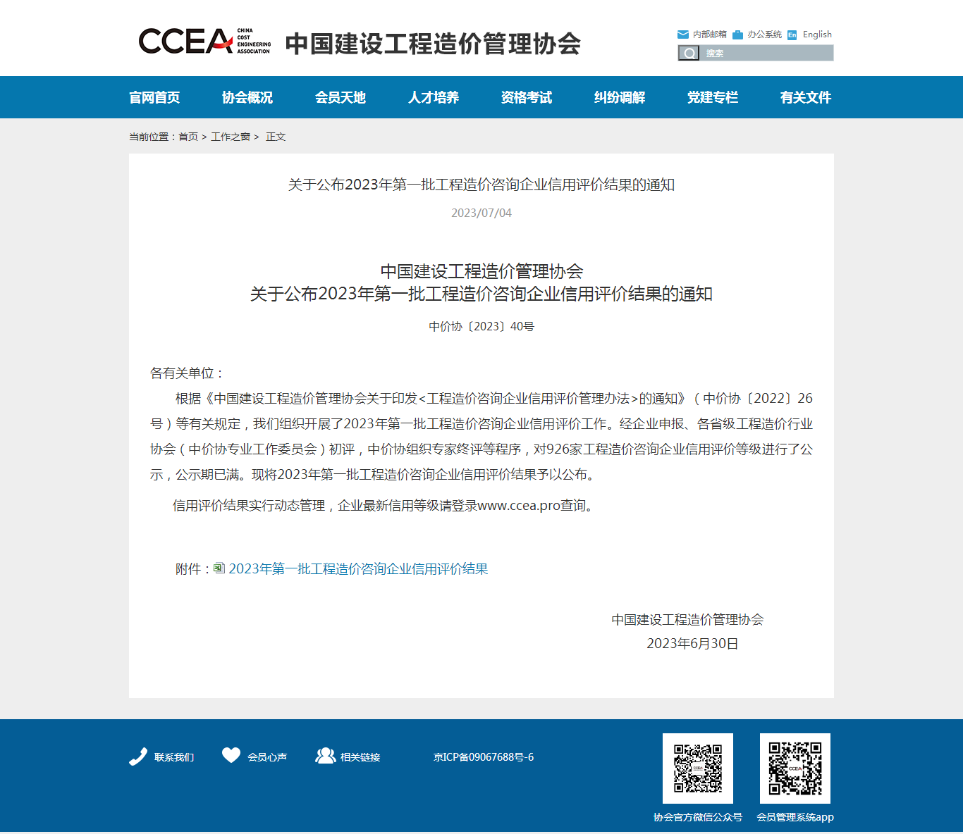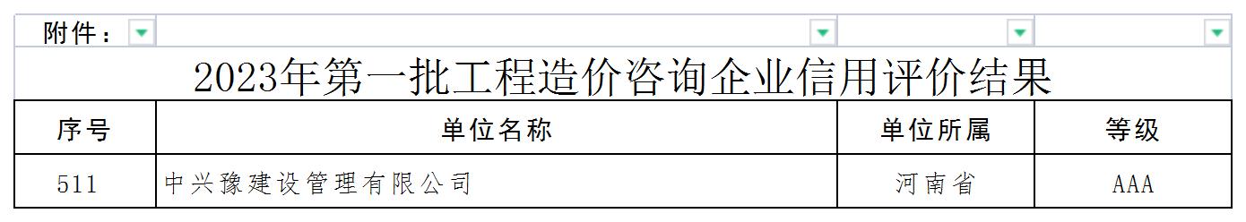 7月4日,中國建設工程造價(jià)管理協(xié)會(huì )發(fā)布關(guān)于公布2023年第一批工程造價(jià)咨詢(xún)企業(yè)信用評價(jià)結果的通知,經(jīng)企業(yè)申報、各省級工程造價(jià)行業(yè)協(xié)會(huì )初評,中價(jià)協(xié)組織專(zhuān)家終評等程序,中興豫建設管理有限公司榮獲中國建設工程造價(jià)管理協(xié)會(huì )信用評價(jià)AAA級!