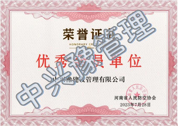 喜報丨中興豫建設管理有限公司榮獲河南省人民防空協(xié)會(huì )“優(yōu)秀會(huì )員單位及個(gè)人”榮譽(yù)稱(chēng)號