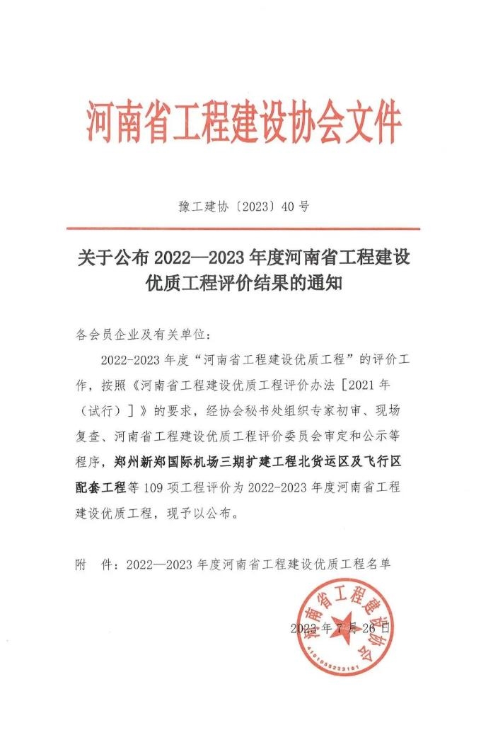近日,河南省工程建設協(xié)會(huì )公布了“2022-2023年度河南省工程建設優(yōu)質(zhì)工程評價(jià)結果的通知”,由中興豫建設管理有限公司擔任監理單位的“省直青年人才公寓晨暉苑項目設計施工總承包一標段”、“省直青年人才公寓晨暉苑項目(6#、7#、8#、9#、10#、11#、15#樓、開(kāi)閉所及地下車(chē)庫)”、“惠濟區金洼小學(xué)新建項目”,共三項目齊上榜,紛紛獲得省級榮譽(yù)。