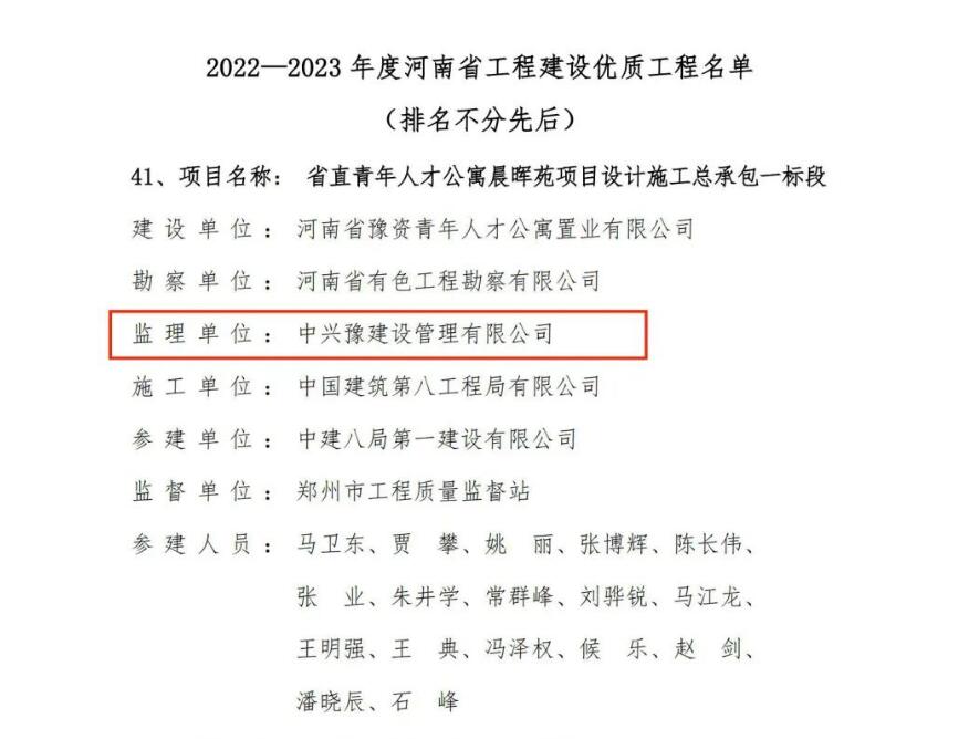 喜報|中興豫建設管理有限公司監理的多個(gè)項目榮獲省級榮譽(yù)稱(chēng)號