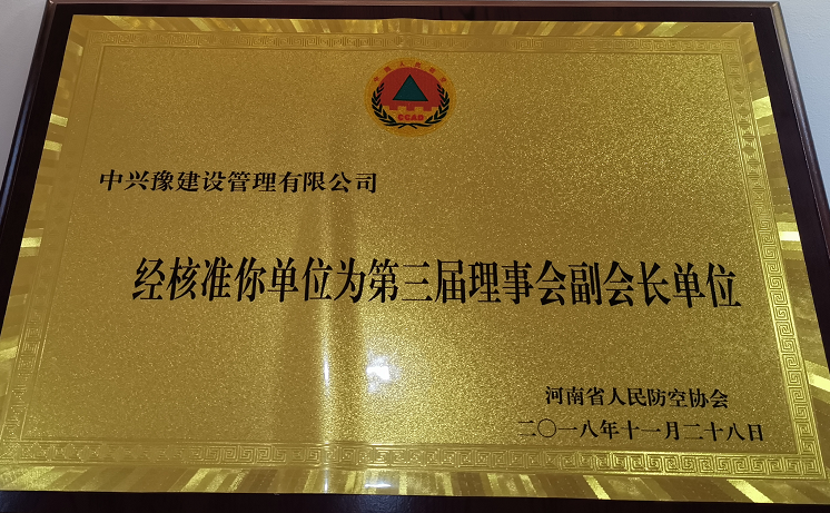 河南省人民防空協(xié)會(huì )第三屆理事會(huì )副會(huì )長(cháng)單位-會(huì )員資格