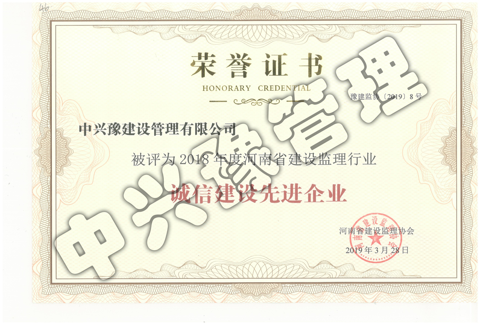 2018年度河南省建設監理行業(yè)誠信建設先進(jìn)企業(yè)企業(yè)-公司榮譽(yù)