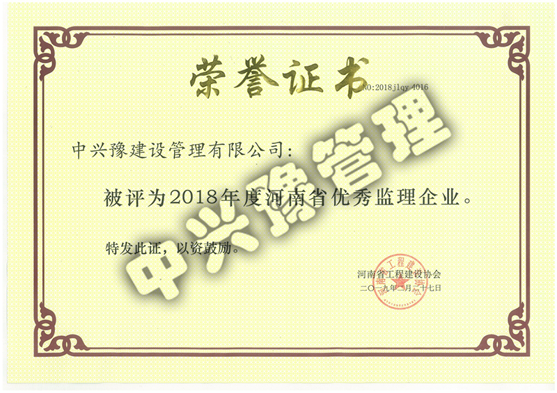 2018年度河南省工程建設優(yōu)秀監理企業(yè)-公司榮譽(yù)