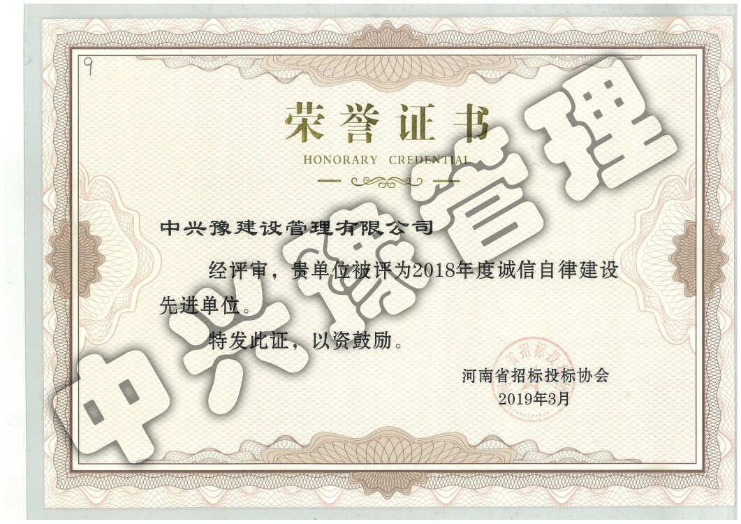 2018年度誠信自律建設先進(jìn)單位-公司榮譽(yù)