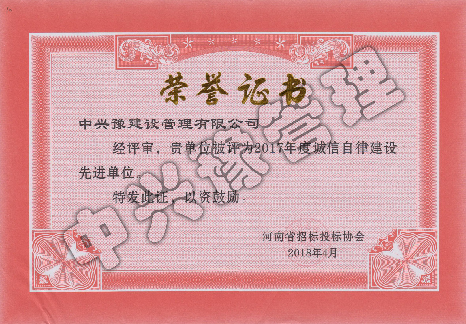 2017年度誠信自律建設先進(jìn)單位-公司榮譽(yù)