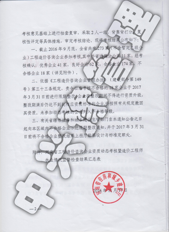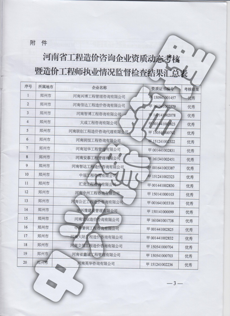 2016年河南省工程造價(jià)動(dòng)態(tài)考核優(yōu)秀企業(yè)-公司榮譽(yù)