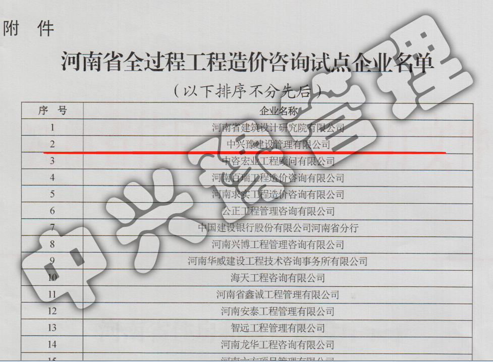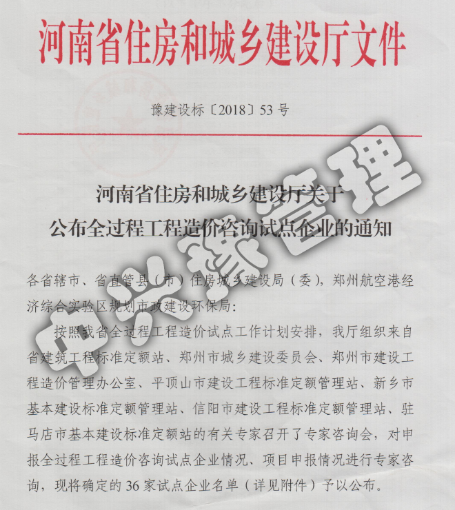 2018河南省住房和城鄉建設廳關(guān)于公布全過(guò)程工程造價(jià)咨詢(xún)試點(diǎn)企業(yè)文件-公司榮譽(yù)