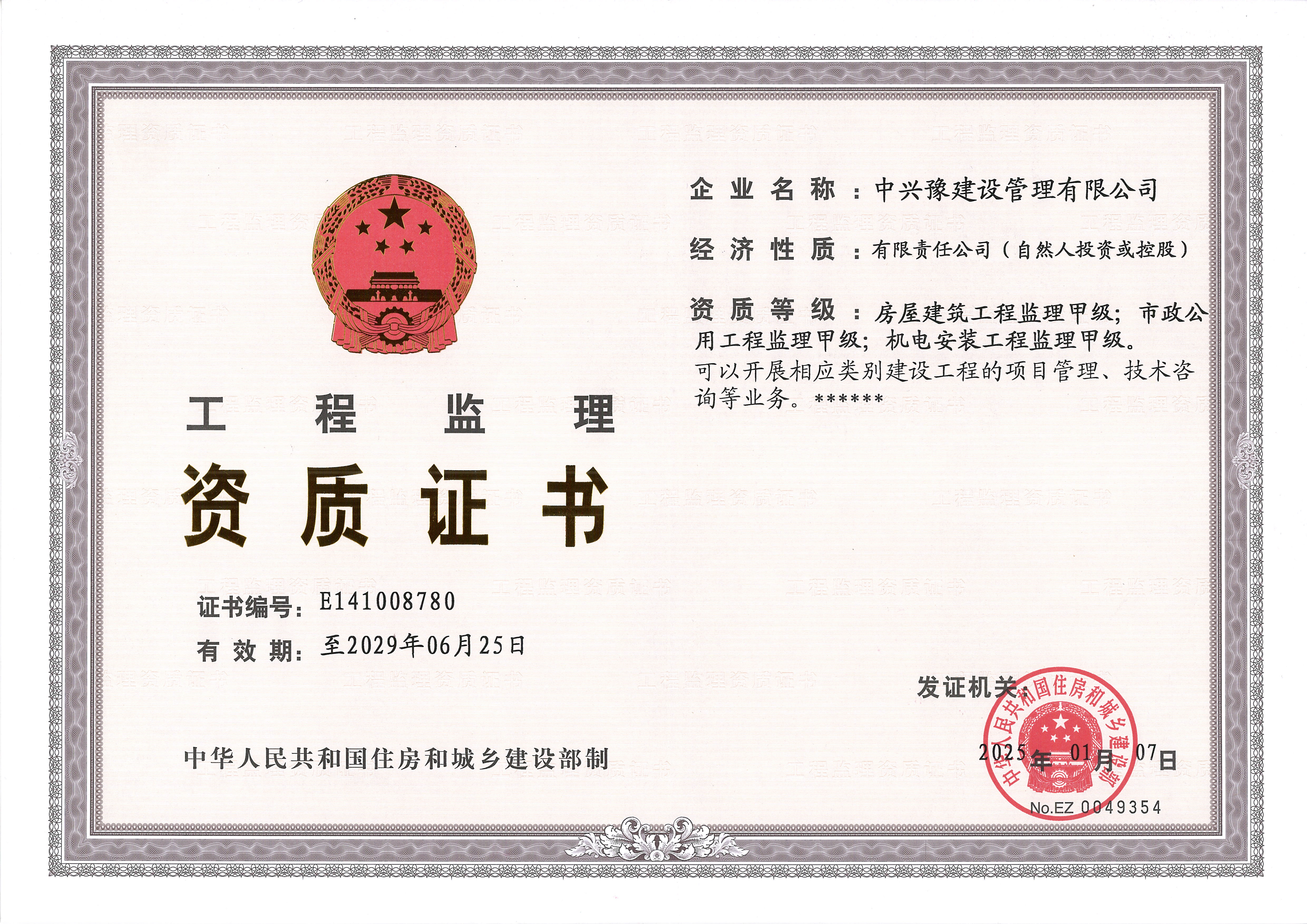 甲級房屋建筑、市政、機電安裝工程監理-公司資質(zhì)
