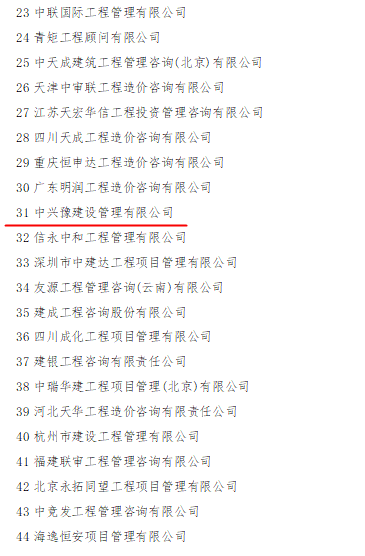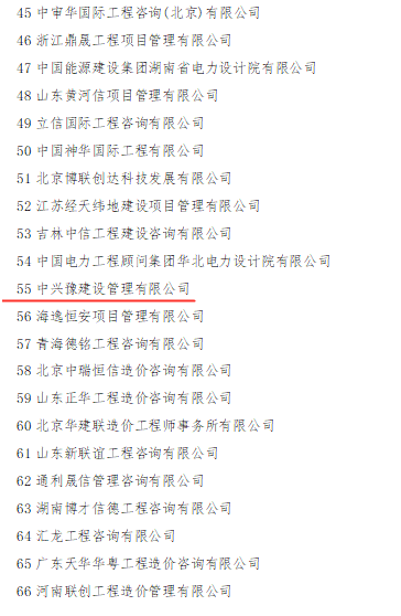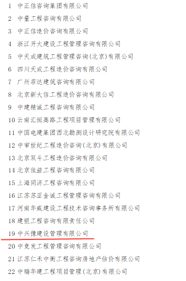 中興豫建設管理有限公司入圍2020年全國工程造價(jià)