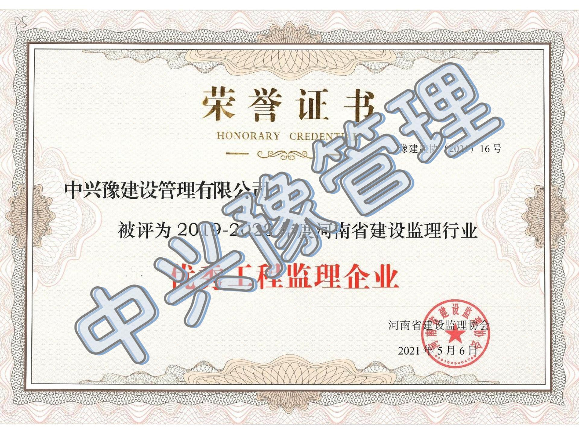 2019-2020優(yōu)秀監理企業(yè)-公司榮譽(yù)